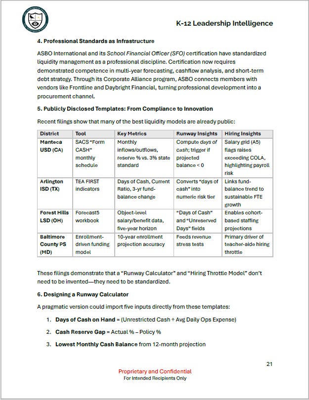 A first look at the emerging treasury discipline in K–12 finance: runway calculators, liquidity ladders, and board-ready cashflow models. - Financial Planning Tools and the Next Generation of District Runway Models