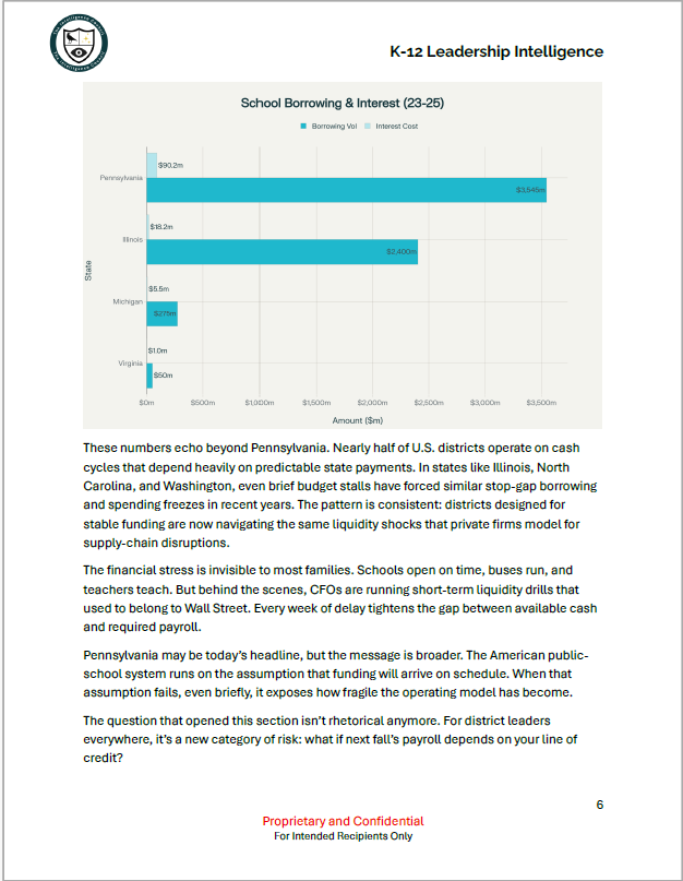 This detailed briefing has been prepared for superintendents, CFOs, district executives, and the vendors that do business with them. It is intended to support informed discussion and decision-making.