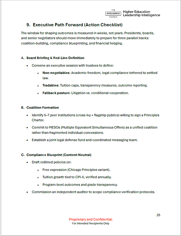 Proposes an alternative, verifiable compact that aligns with legitimate federal aims while preserving institutional autonomy. - Executive Path Forward (Action Checklist)